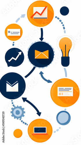 Email Marketing Strategy Flowchart Process, Growth, Ideas, Website, Laptop, Business Success. generative ai