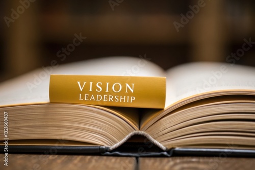 Employee engagement boosts motivation and encourages interaction concept. Open book with a focus on a gold title, emphasizing vision and leadership concepts.