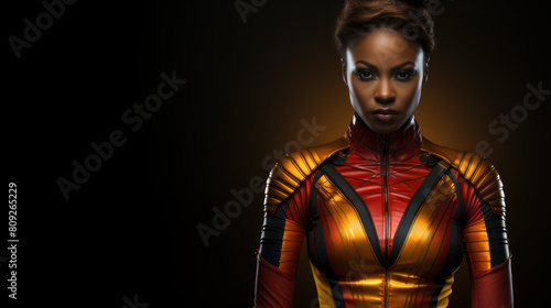 Empowered Black Female Superhero in Dynamic Suit Standing Confidently
