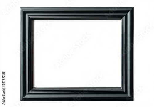 Empty black rectangular picture frame with simple classic design on white background