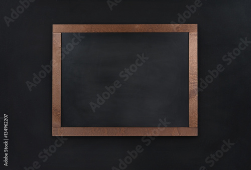 Empty blackboard (chalkboard) on black wall