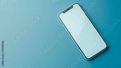empty, blank mockup,completly white phone screen, lying flat on blue background