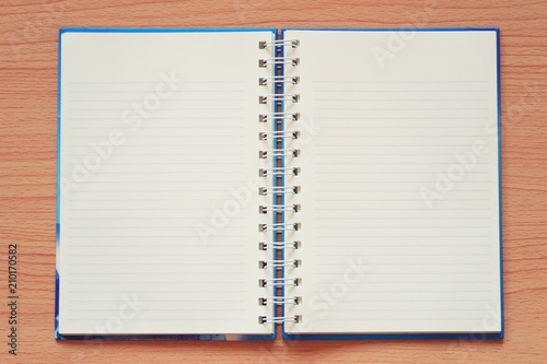 Empty book is placed on a brown wooden background.