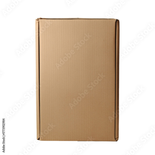 Empty cardboard box showcasing its simple design and sturdy structure on a transparent background