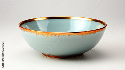 Empty crockery gold bowl isolated on white background