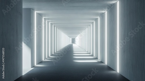 Empty, futuristic hallway with bright light.