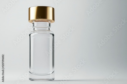 Empty glass container with a gold lid on a minimalistic background creating a sleek and modern aesthetic. Generative AI