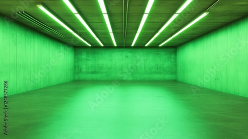 Empty Green Concrete Garage Space: Modern Minimalist Architecture