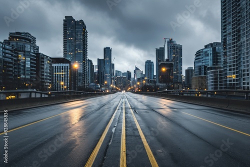 Empty highways skylines, A photo of an Empty asphalt road and a modern city, AI generated