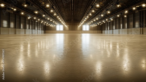 Empty Industrial Warehouse Interior with Polished Concrete Floor and Windows