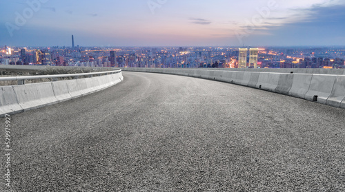 Empty road and city buildings background
