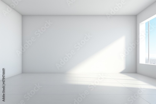 Empty room and wall and wooden floor with interesting with glare from the window. Interior background for the presentation. Generative AI