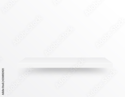 Empty shelf on light gray background. Can be used as a template for stores, galleries and other places.