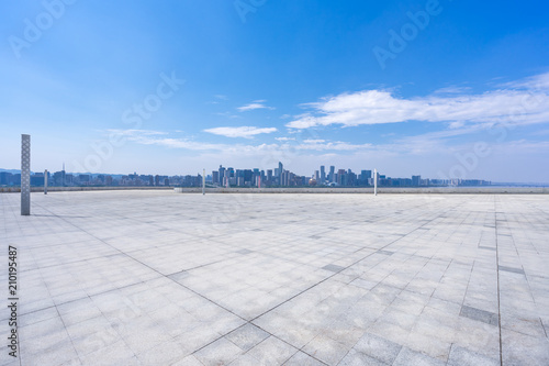 empty square with panoramic city skyline