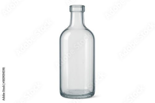 Empty transparent glass bottle for beverages or liquids showing clean design on a cutout background