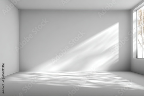 Empty white room with sunlight casting shadows