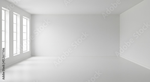 Empty White Room with Tall Windows and Natural Light