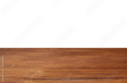 Empty wood floor perspective table top isolate on white background