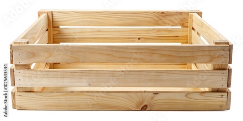 Empty wooden crate box isolated on white background fisheye