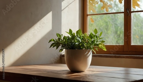 Empty wooden shelf with plant on beige wall.apartment, contemporary, elegant, floor, furniture, living, living room, luxury, room, television, three-dimensional, beige, interior, empty, 123
