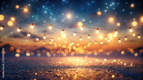 Enchanted Evening String Lights Gleam Against a Starry Night Sky and Glittering Ground