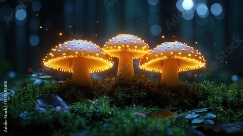 Enchanted Forest: Glowing Mushrooms in the Night