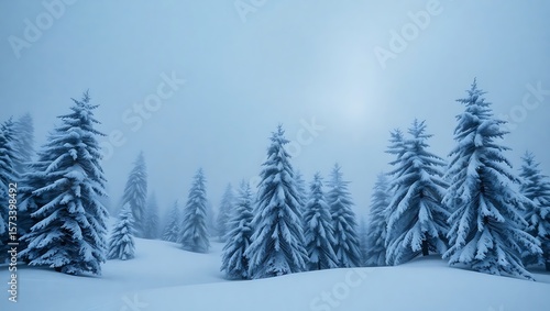 Enchanted Winter Wonderland Snow-Covered Trees in a Misty Forest