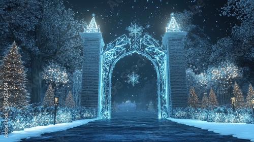 Enchanted Winter Wonderland with Decorative Gate