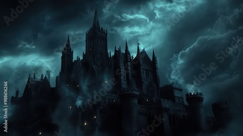 Enchanting Dark Castle Under Stormy Skies