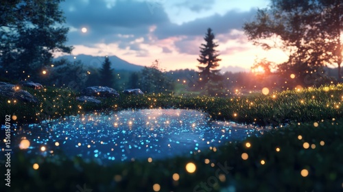 Enchanting sunset reflection serene landscape digital art nature tranquil viewpoint dreamy concept