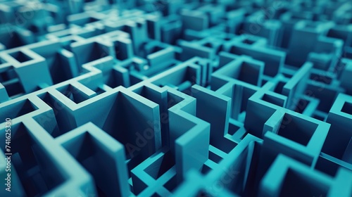 Endless Blue Maze: 3D Rendered Labyrinth in Monochromatic Blue Tones Representing Challenges and Puzzles abstract background