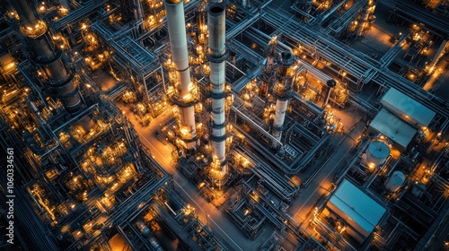 Endless refinery pipelines stretching across the facility, showcasing a complex fuel processing network