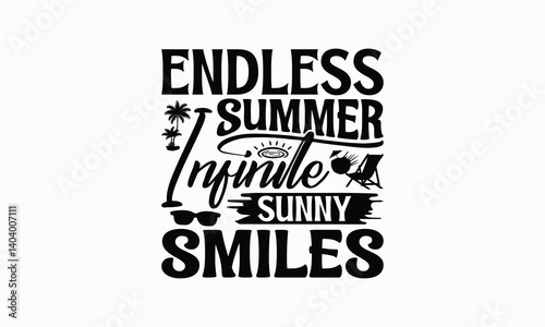 Endless Summer Infinite Sunny Smiles - Summer T-Shirt Design, Handmade Calligraphy Vector Illustration, Eps, Files For Cutting.