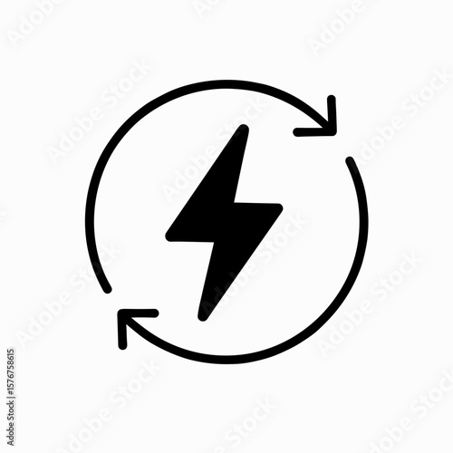 Energy Cycle Silhouette Icon — Lightning Bolt Inside Circular Arrows Symbolizing Power Recycling Process