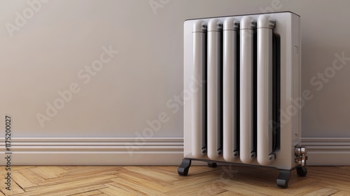 Energy-efficient heater on a subtle white-to-gray gradient background, exuding modernity.