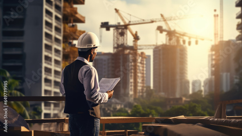 Engineer working at construction site, Real Estate Project with Civil Engineer concept.