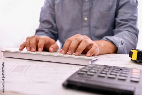 Engineering concept. The engineer is working in the office. Engineers are designing their work calculations.
