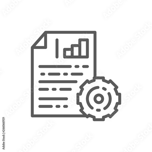 Engineering documents with diagram and gear wheel, project plan line icon.