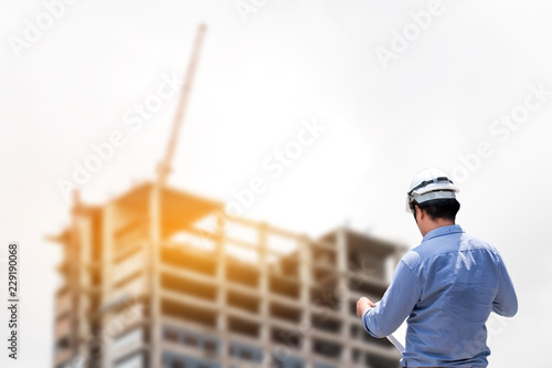 Engineers are working on plans to build high-rise buildings.Conecept engineer building..