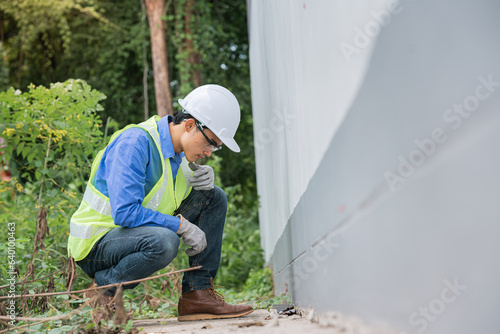 Engineers wear blue shirts overlaid with green, white betel nuts, and protective goggles. checking work building efficiency