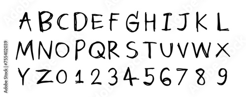English alphabet A to Z, 0 to 9 3 cute on a white background, vector illustration.