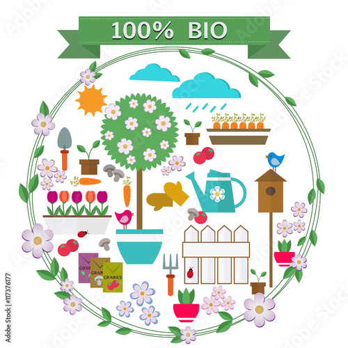 Ensemble d'icônes flat design de jardin - Vector illustration