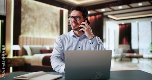 Entrepreneur Man In Hotel On Business Travel Vacation