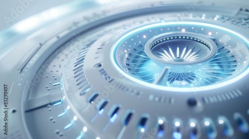 Environmental health improves quality of life, focused on a closeup of an advanced air quality sensor, enhanced with futuristic technology