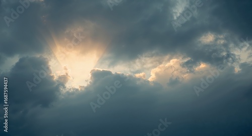 Ephemeral Radiance. Light Beams Through Textured Clouds, an Abstract Sky Scene.