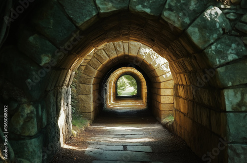 Epic Venture Through Majestic Ancient Stone Archway Illuminated by Historic Light and Timeless Beauty Excellence
