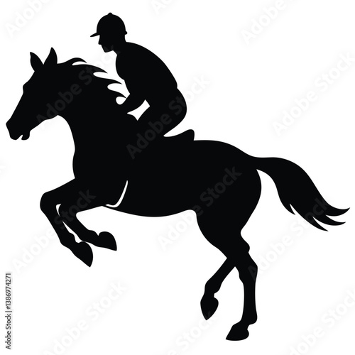 Equestrian Silhouette Of Horse And Rider Jumping Illustration Art.