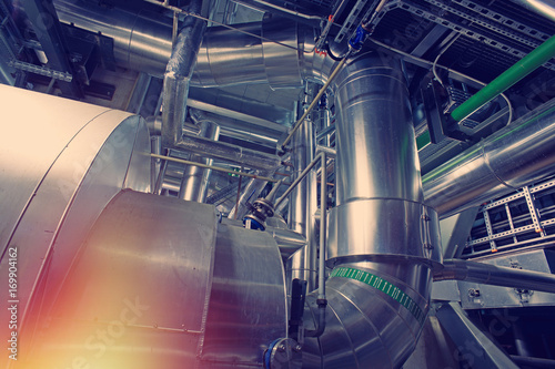Equipment, cables and piping as found inside of a modern industrial power plant