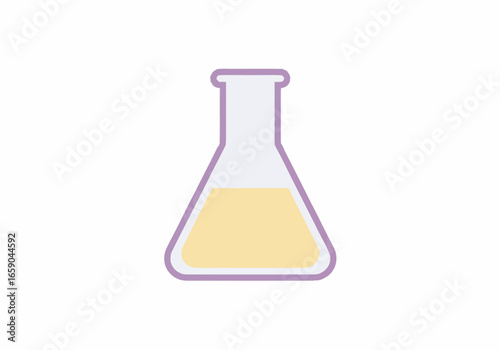 Erlenmeyer Flask with Pale Yellow Liquid Purple Outline.