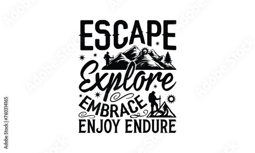Escape Explore Embrace Enjoy Endure - Hiking T-Shirt Design, Handmade calligraphy vector illustration, Illustration for prints on bags, posters, cards, Vintage design.